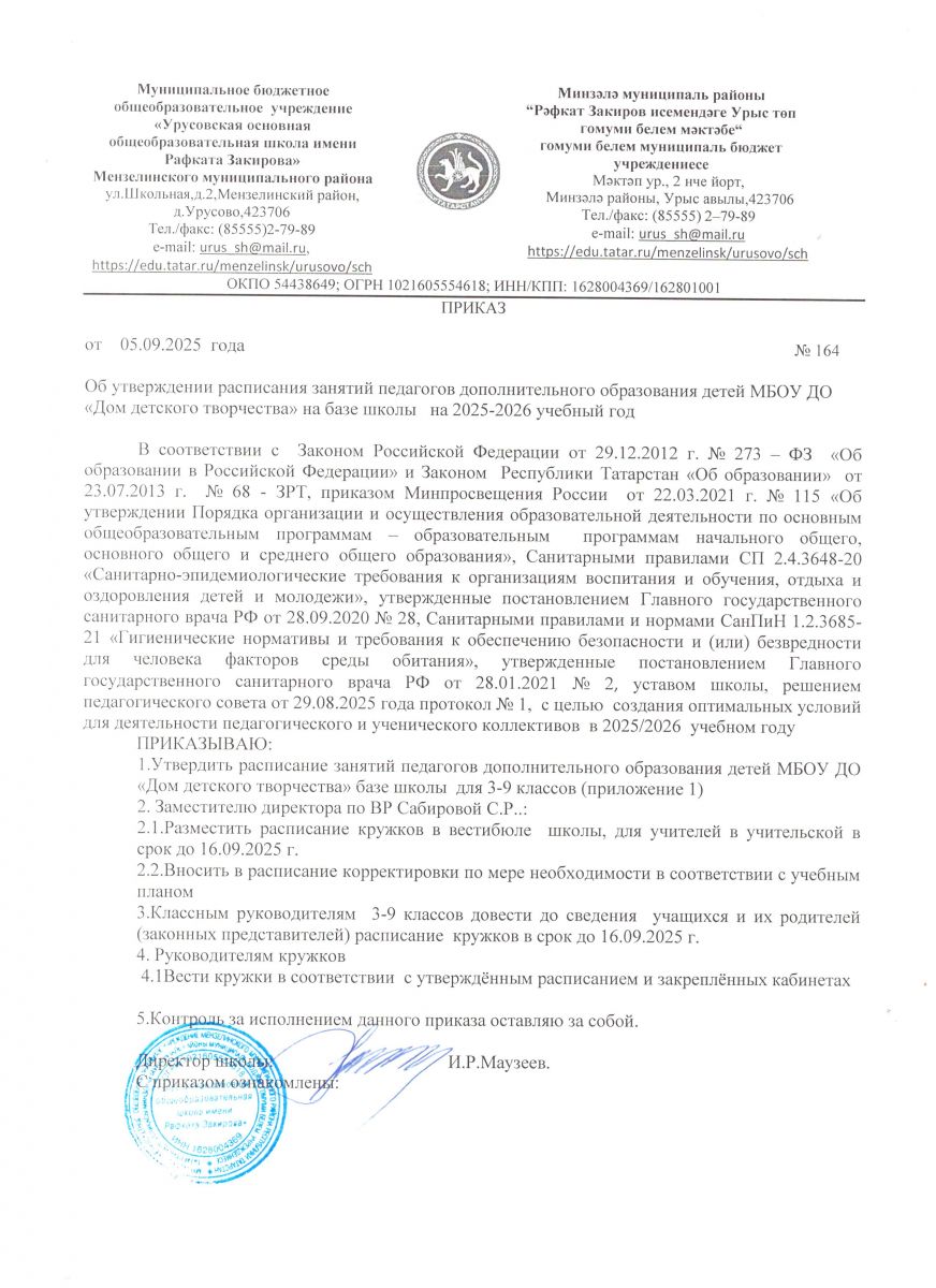 | Короткое название: | МБОУ "Урусовская ООШ имени Р.Закирова" |