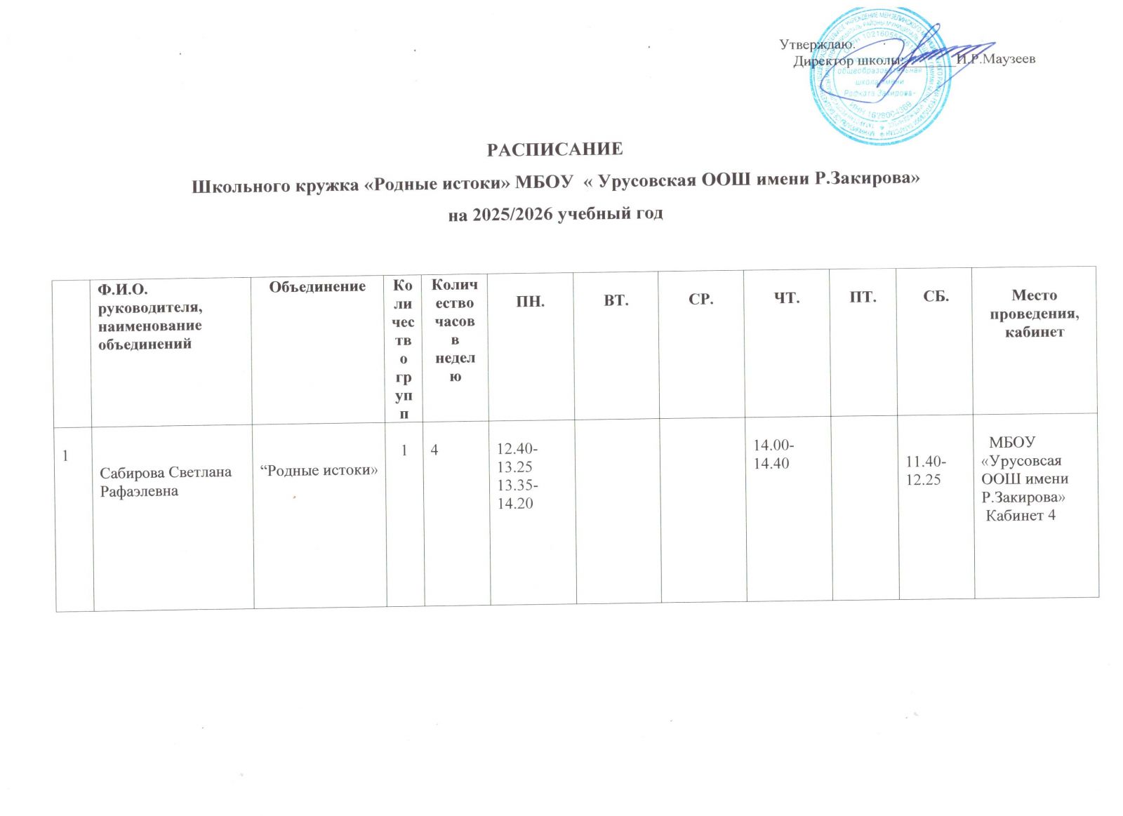 Расписание кружка "Родные истоки"