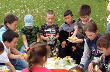 Пасмурное , прохладное утро. Но даже несмотря на такую погоду наш дружный коллектив собрался в лагере.Утренняя зарядка создала положительный эмоциональный заряд и хороший физический тонус на весь день. Сегодня у нас торжественное открытие лагеря. Так и хочется сказать: « С днем рождения , лагерь!» Это представление своих отрядов, интересная квест игра «Все нам лето подарило». Чего стоит игра по станциям «В стране чудес», где в конце ребят ждала фруктовая поляна .Мы не только играли ,но и совместно с библиотекарем нашей школы провели полезную беседу на тему «Нет -терроризму». А в конце дня, видя наш задор и веселое настроение показалось из-за туч и солнышко. 03.06.2019