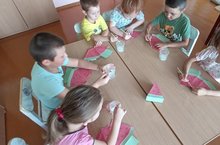 Во всем мире 3 августа празднуют День арбуза. Яркий и вкусный день - День рождения арбуза отметили и ребята старшей совместно с подготовительной группой. Герой дня - большая и сладкая ягода, которая созревает на бахчах и является воплощением самого лета. Педагоги рассказали детям про арбуз, как она растет и где. И для закрепления сделали аппликацию долька арбуз