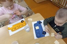 Работая в рамках по модулю ПДД в младший и средне- подготовительной группе провели занятие аппликация на тему Автобус