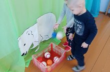 Работая в рамках по модулю сенсорика в младший группе провели игру "Помоги мишке собрать мячики"