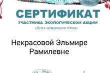 Воспитатель Некрасова Эльмира Рамилевна получила сертификат участника экологической акции "День зимующих птиц"