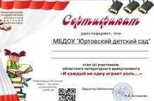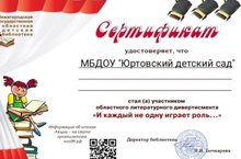 "Юртовский детский сад" получил сертификат участника "и каждый не одну играет роль"