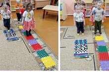 Работая в рамках по модулю сенсорика, с детьми младший группы провели игру маленькие и большие ножки идут по дорожке
