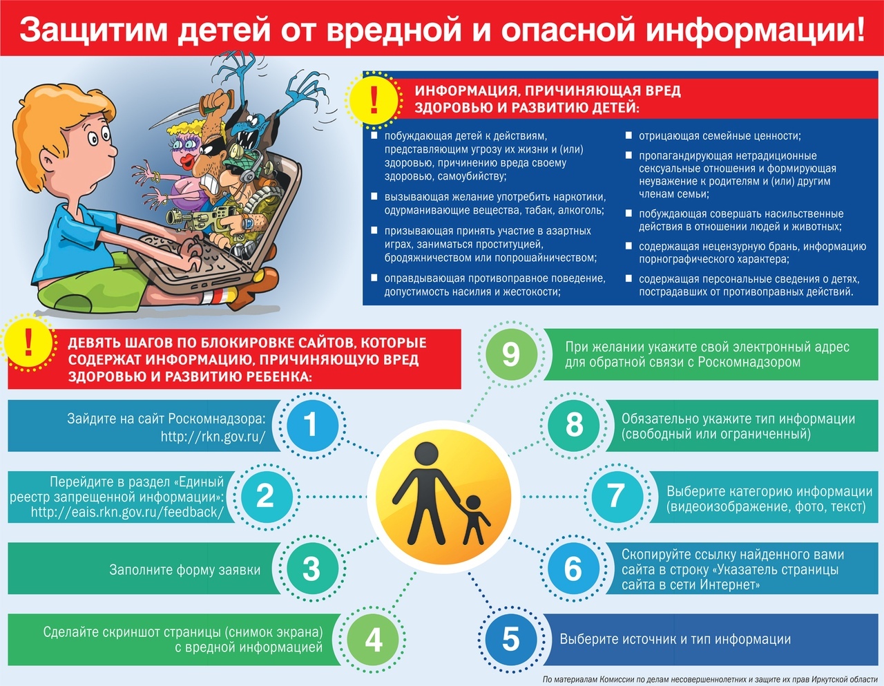 Родителям воспитанников напомнили о «5 способах защиты ребенка от «вредной» информации» и рекомендовали список безопасных сайтов для детей.