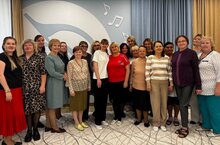 Выпускники-первоклашки и их родители после праздничной линейки пришли поздравить и поблагодарить своих воспитателей и педагогов - это было очень трогательно и приятно.