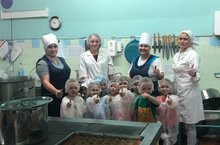 рассмотрели спецодежду- сходили на экскурсию -на кухню детского сада, где повара рассказали о своём труде
