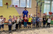 Сегодня в детском саду прошел праздник футбола. Тренеры футбольного клуба "Импульс" Мальцев Вадим Артемович и Мангушев Роман Радикович рассказали ребятам о истории возникновения футбола и провели спортивную тренировку (прокатывание мяча с продвижением вперед, вели мяч змейкой ногами по прямой и в разных направлениях, учились останавливать мяч ногой). Ребята показали свою ловкость, быструю реакцию, спортивную выдержку.
