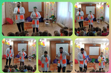 Сегодня в гости в наш детский сад приезжал Казанский театр "Колобок". познавательный спектакль "Лиса Алиса и Кот Базилио в стране Светофории", по правилам дорожного движения, очень понравился воспитанникам. они вспомнили ПДД, дорожные знаки.