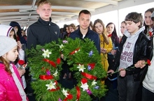 На торжественной линейке присутствовали ветераны-юнги Соловецких островов. Три протяжных гудка прозвучали, как набат, напоминая всем о тех, кто отдал свою жизнь за нынешнее благополучие и счастье. Минута молчания...