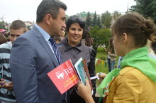 30 августа на празднике, посвященном Дню Города, учащиеся 8 Б класса (кл.рук. Сырова О.В.) и учителя гимназии провели акцию «Я гражданин».