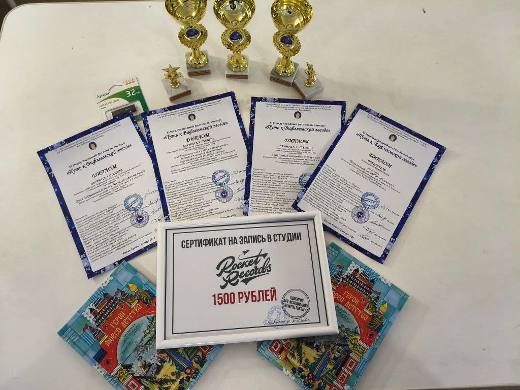 Поздравляем участников ансамблей "Капитошки", "Певуньи", Исмагилову Алину, Зубринину Олесю, Мухаметзянову Аишу, Костюковых Киру и Мирославу, Хуснутдинову Алису (руководитель Тишина Н.М.), участников ансамбля "Штерн" (руководитель Жукова Н.Н.) с Победой и призовыми местами в Республиканском конкурсе современного искусства "Прорыв"!