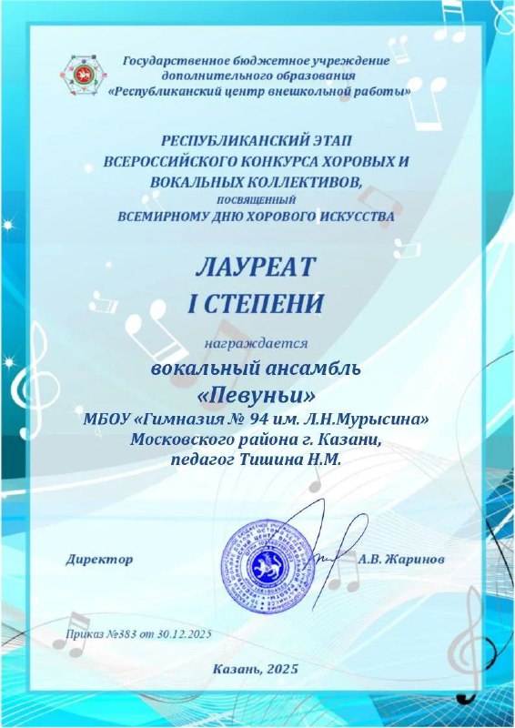 Поздравляем Вокальный ансамбль "Певуньи", Мухаметзянову Аишу, Зубринину Олесю (пр.Тишина Н.М.), хореографический ансамбль "Штерн" (пр.Жукова Н.Н.) и участников хора "Бригантина" (пр.Майорова) с победой в четырёх номинациях Международного конкурса!
