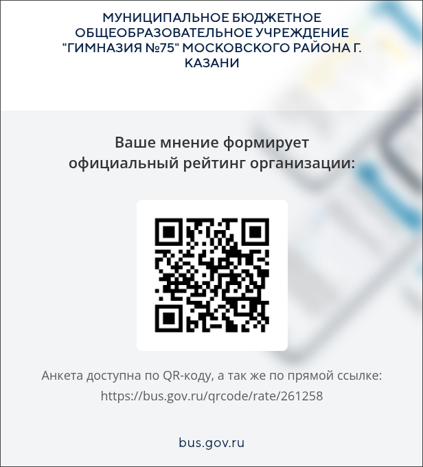 Муниципальное бюджетное общеобразовательное учреждение «Гимназия №75» Московского района г.Казани