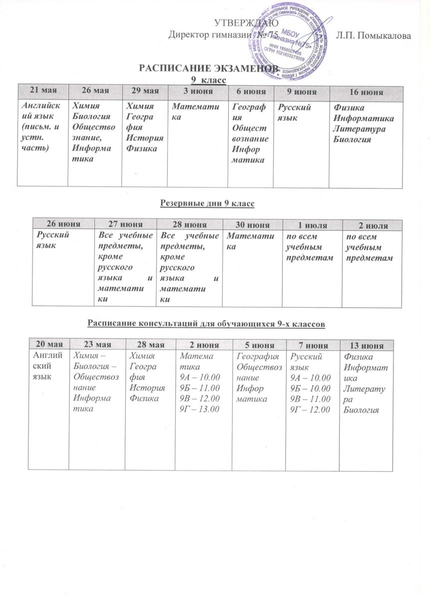 Расписание консультаций и экзаменов