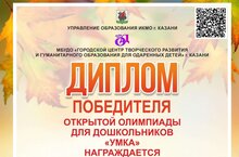 МБУДО «Городской центр творческого развития и гуманитарного образования для одаренных детей» г. Казани провел открытую олимпиаду для дошкольников «Умка». В олимпиаде приняли участие 14 воспитанников старших групп №№1, 2, 12 , а также 6 воспитанников подготовительных групп №№11, 13
