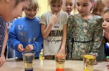 Давно мы не радовали вас экспериментами и успехами наших дошкольников в этом увлекательном занятии. Воспитанники 8 группы с помощью стакана, подсолнечного масла, красок и шипучих таблеток "создавали" цветные пузыри. Ребята учились наблюдать за происходящим процессом, выяснили как образуются и окрашиваются пузырьки, проявили большой интерес к эксперименту.