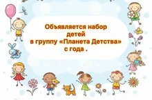 Уважаемые родители! Объявляем набор в группу "Планета детства" для самых маленьких дошколят от 1 года.
