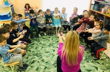 Вместе с воспитателем под руководством логопеда дети 5 группы упражняются в артикуляционной и дыхательной гимнастике, выполняют самомассаж с помощью мячиков и су-джок тренажёров, тренируют слуховое внимание, пропевают логоритмические песенки и воспитывают чувство ритма. Такие логопедические пятиминутки проходят в игровой форме и носят подготовительный характер - за короткий промежуток времени настраивают дошкольников на дальнейшую плодотворную работу.
