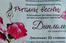 Поздравляем ещё одну маленькую победительницу - воспитанницу 10 группы Нурмухаметову Милану за 3 место во Всероссийском фестивале-конкурсе детского и юношеского творчества "Ритмы весны" в номинации "Народный танец" до 6 лет, ансамбли.
