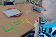 Закрепление математических навыков происходит не только на групповых занятиях, но и в играх детей. В этом воспитанникам 5 группы помогают многофункциональные счетные палочки, с помощью которых развивается мелкая моторика, пространственные представления, происходит изучение порядка чисел и их состав, закрепляются понятия "больше-меньше", "дальше-ближе", "короче-длиннее".