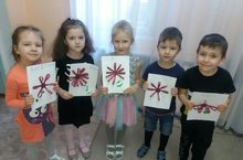 Не смотря на предпраздничное настроение, которое царит в нашем детском саду, образовательную деятельность никто не отменял. Сегодня воспитанники 10 группы, используя смешанную технику рисования ( с помощью кисточек и пальчиков рук), выполнили творческие работы - веточка мимозы.