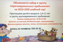 ОБЪЯВЛЯЕТСЯ НАБОР В ГРУППУ "КРАТКОВРЕМЕННОГО ПРИБЫВАНИЯ". ЗАПИСЬ ПО ТЕЛЕФОНУ: 555-25-32. 20.05.2019