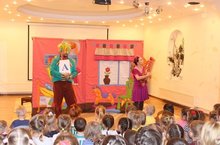 Сегодня наших детишек увлекли в театрализованное представление актёры театра"Ёж". Пожительный эмоциональный настрой, детское активное участие в действии спектакля вокруг "Волшебной конфеты" увлекло всех присутствующих в зале.