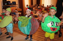 "Творческий английский - Creative english" - программа, реализуемая нашим детским садом, включает массу праздников и развлечений на английском языке для детей. Одним из таких праздников является "Apple day", традиционно радующих всех в октябре месяце. Поделки, рисунки, авторские необычные детские костюмы к этому дню готовят и педагоги и родители. Инновационной идеей этого года стало проведение Яблочной ярмарки для детей.