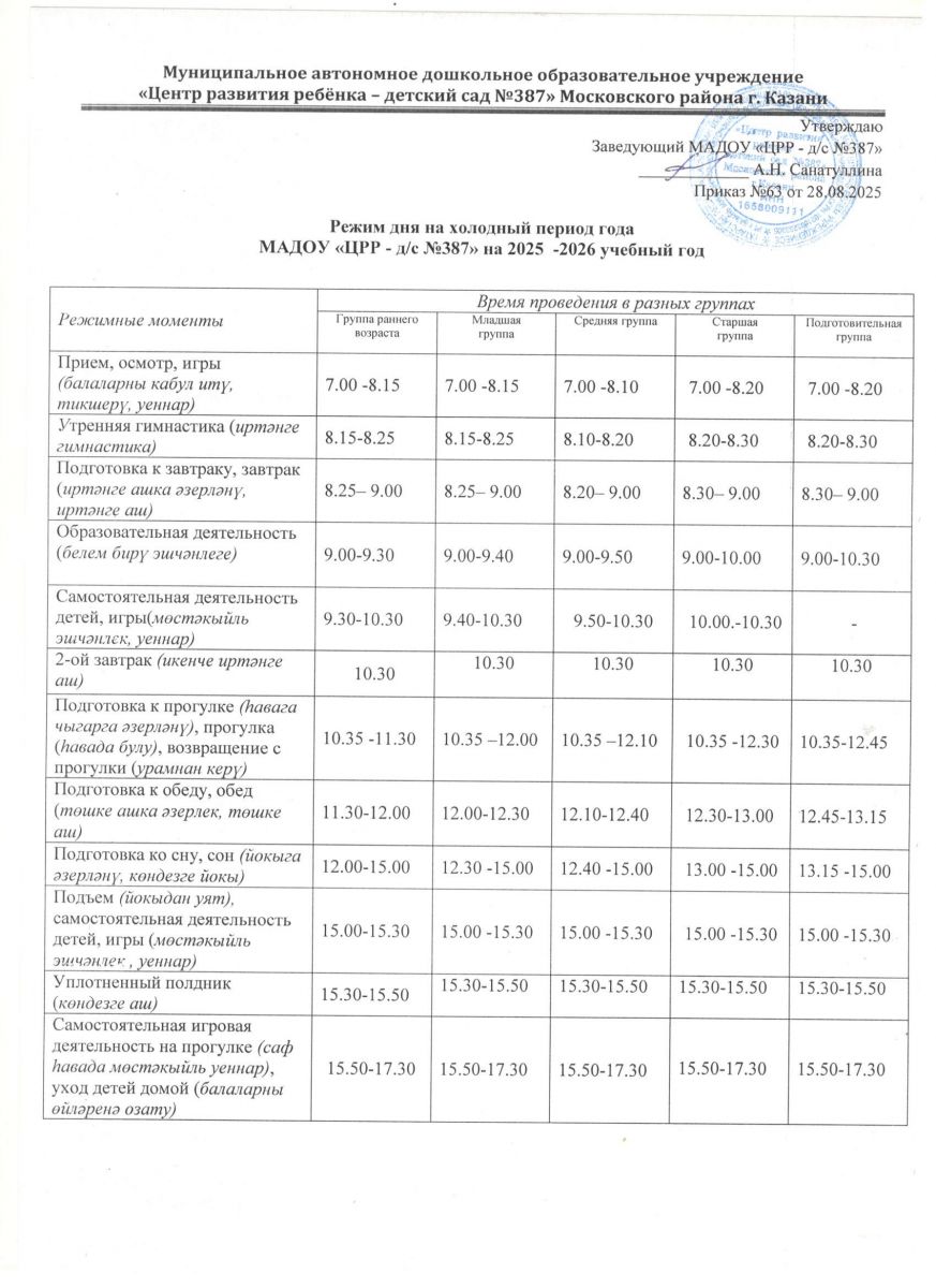 Муниципальное автономное дошкольное образовательное учреждение "Центр развития ребенка - детский сад №387" Московского района г.Казани