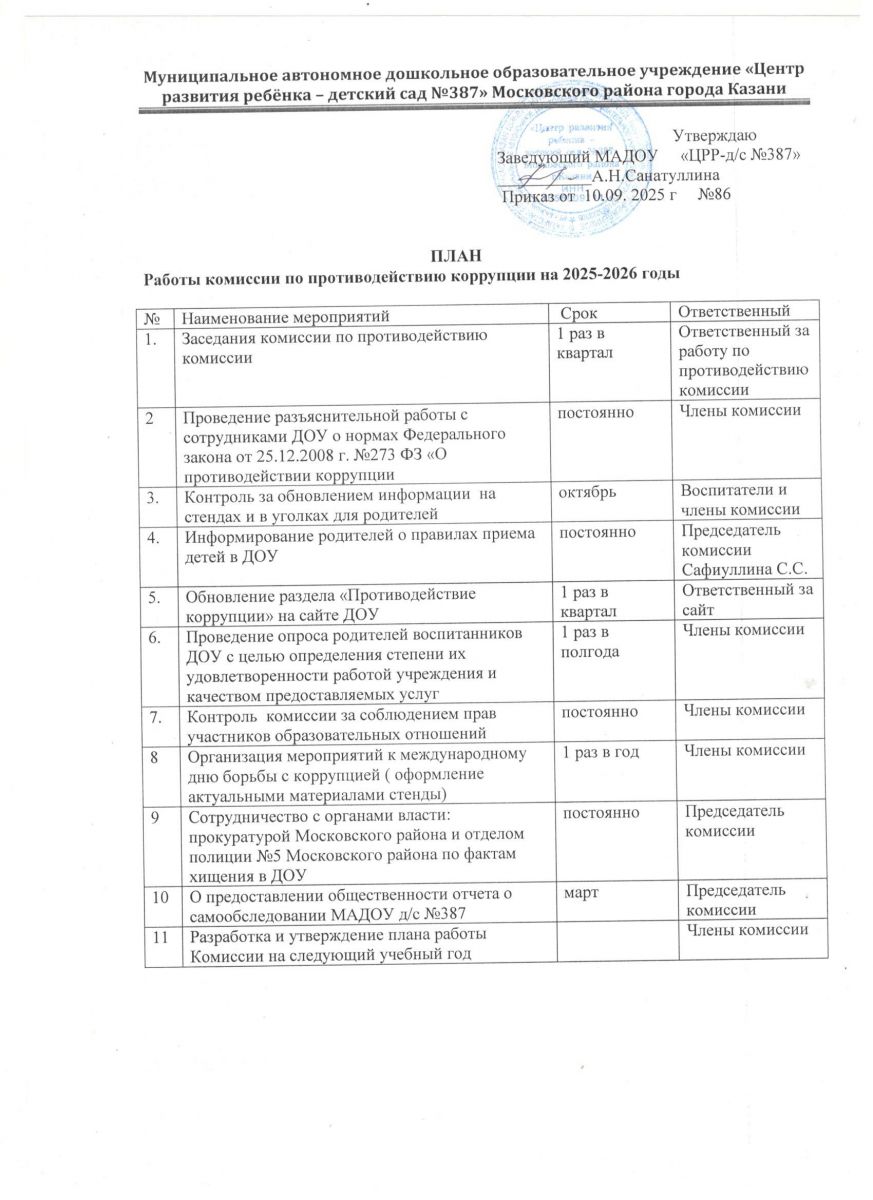 План работы комиссии по противодействию коррупции на 2025-2026 годы