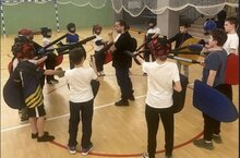 Наши шестиклассники попробовали себя в роли юных рыцарей: освоили базовые элементы фехтования, подержали тренировочное оружие и даже прикоснулись к настоящим доспехам (которые, кстати, очень тяжёлые!).