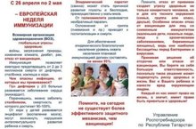 По инициативе Всемирной организации здравоохранения в Европе, в том числе в Российской Федерации и Республике Татарстан в период с 26 апреля по 2 мая 2021г. проводится Европейская неделя иммунизации (далее ЕНИ-2021).