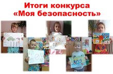 В детском саду подвели итоги конкурса рисунков "Моя безопасность". Первое место заняла Игнатьева Ирина (группа №2). Второе место поделили между собой Аксенов Никита (группа №7) и Савельева Ралина (группа №2). На третьем месте рисунки Трунова Даниила (группа №9) и Устимовою Юлии (группа №2).