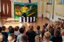 Артисты театра "Пеликан" со спектаклем "Апельсиновый автобус" в гостях у дошколят