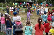 Всех детей детского сада собрал на спортплощадке празник"От улыбки станет веселее!"
