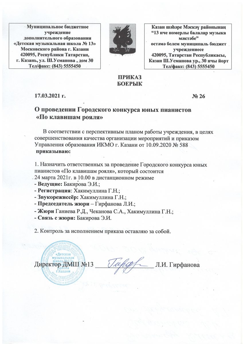 Проведение годоского конкурса "По клавишам рояля" Приказ Положение