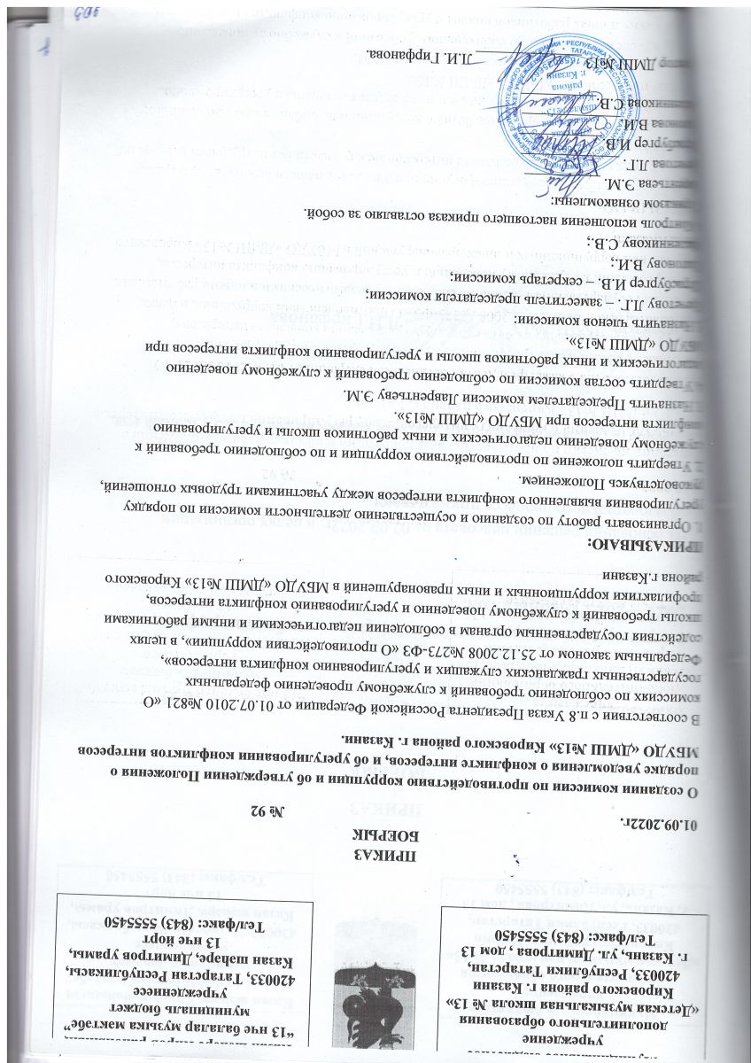 Приказ "О создании комиссии по противодействию коррупции" 2022г.