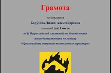 9 ноября 2024 г. студентка группы 2БУ-552 Карузина Лилия приняла участие во II Всероссийской олимпиаде по безопасности жизнедеятельности по разделу «Чрезвычайные ситуации техногенного характера».