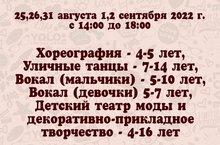 Ждём вас 25, 26, 31 августа, 1,2 сентября с 14 до 18 часов.