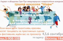 Центр искусств "Шарм" приглашает мальчиков и девочек в возрасте от 4 до 7 лет для занятий хореографией. Просмотр состоится 4,5,6 сентября с 16.00 до 19.00 по адресу Восход 16А