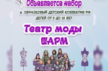 Объявляется набор в Образцовый десткий коллетив РФ "Театр моды"Шарм". Приглашаются дети в возрасте от 5 до 15 лет. Отбор состоится 4,5,6 сентября с 16.00 до 19.00 по адресу Восход 16А.