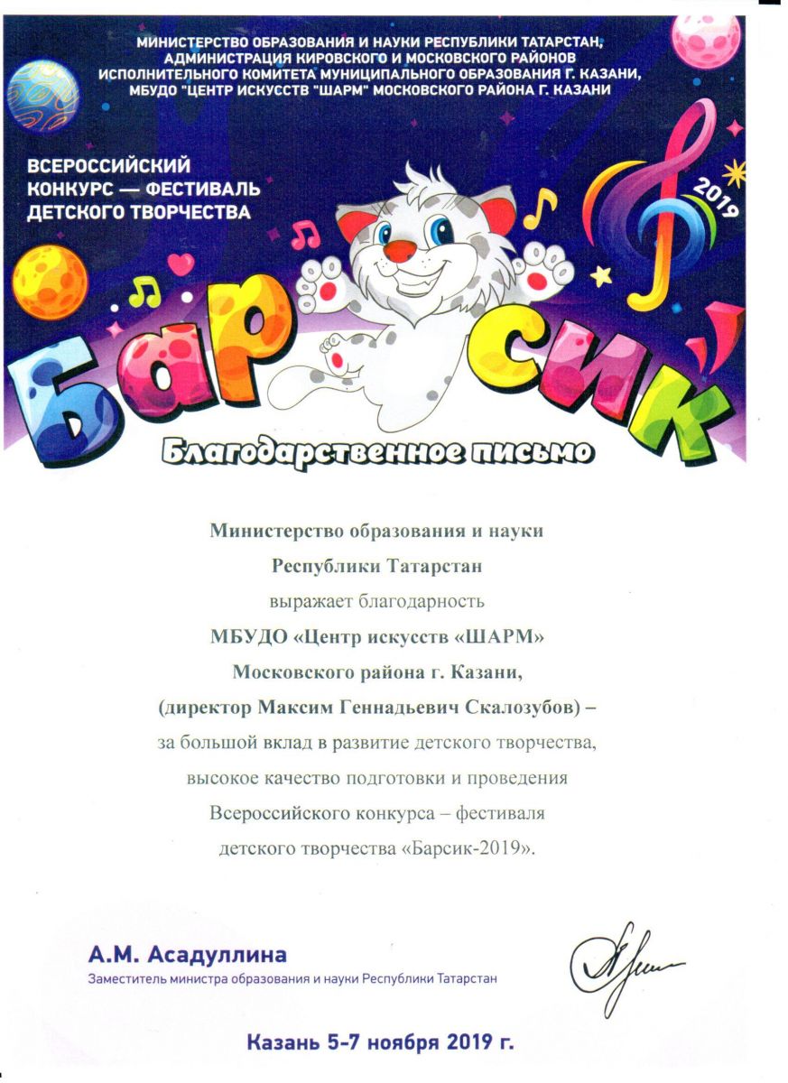 Подготовка и проведение Всероссийского конкурса - фестиваля детского творчества "Барсик - 2019"