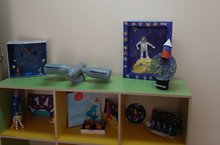 На втором этаже детского сада проходит выставка, посвященная Дню космонавтики. На выставке представленны совместные работы детей и родителей, воспитанников и педагогов: ракеты, планеты солнечной системы... Здесь можно увидеть и необычные рисунки, и макеты Космических станций.