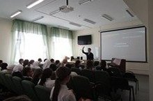 22 апрельдә “Бөек Җиңүгә – 70 ел”, “Россиядә һәм Татарстанда Әдәбият елы”, “Туган тел айлыгы” һәм “Мин татарча сөйләшәм” акциясе кысаларында гимназиянең Актлар залында күренекле әдәбият галиме, җәмәгать эшлеклесе, тәнкыйтьче Фоат Галимулла улы Галимуллин белән очрашу узды. -