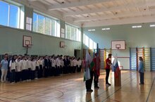 Сегодня в нашей школе прошла традиционная линейка с выносом флагов. На этой неделе участие в линейке приняла параллель 9-х классов.