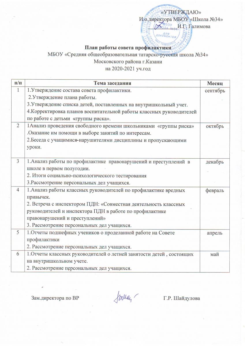 • План работы Совета по профилактике правонарушений и безнадзорности.