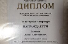 Поздравляем Зарипова Алмаза с победой (1 место) в Республиканской олимпиаде по татарской литературе.