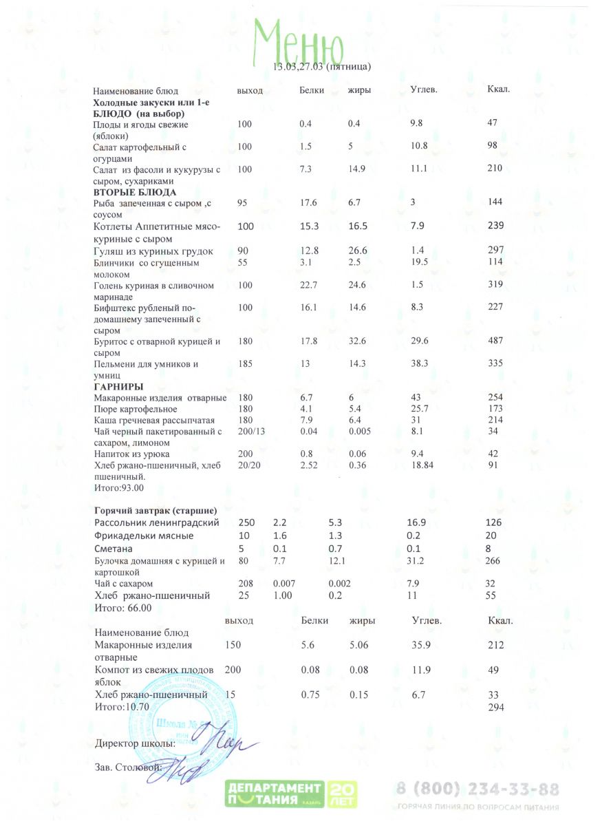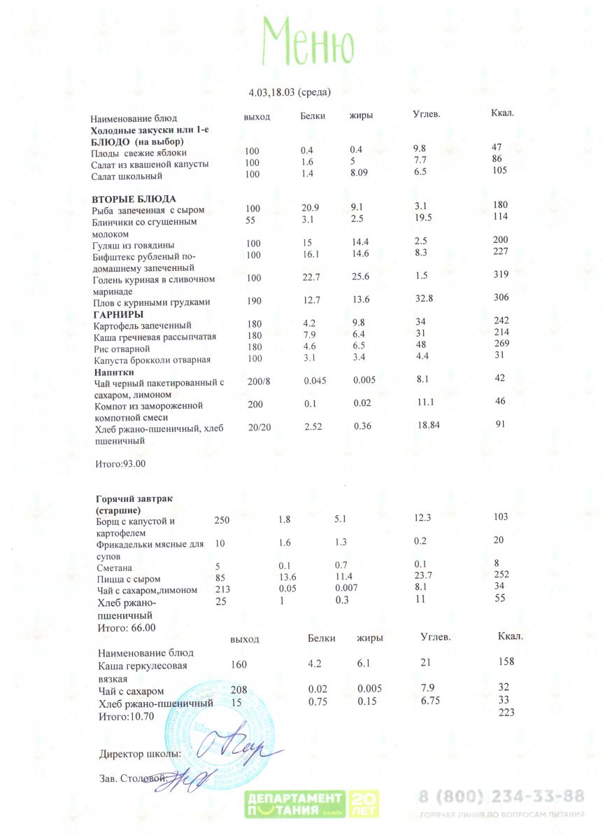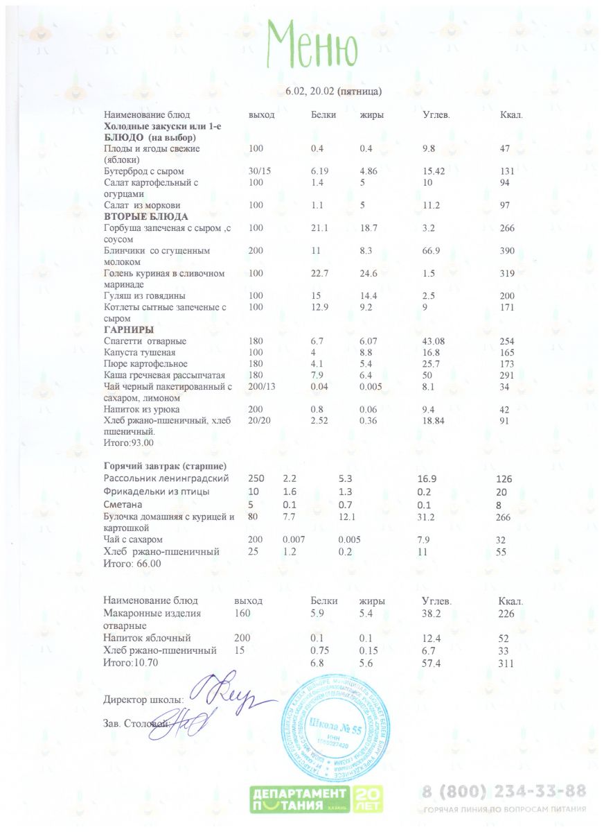 Меню 5 - 11 классы